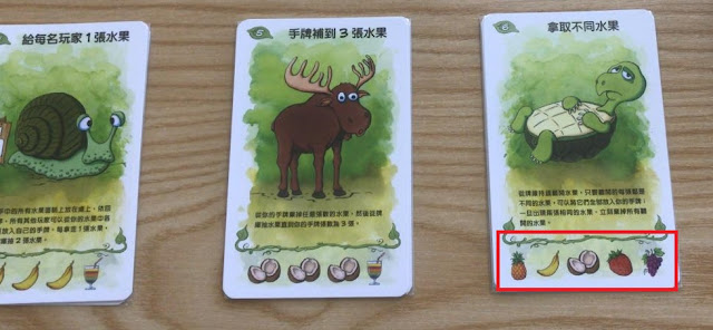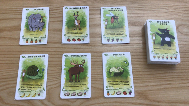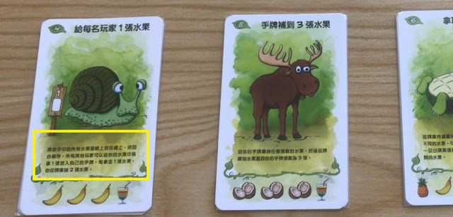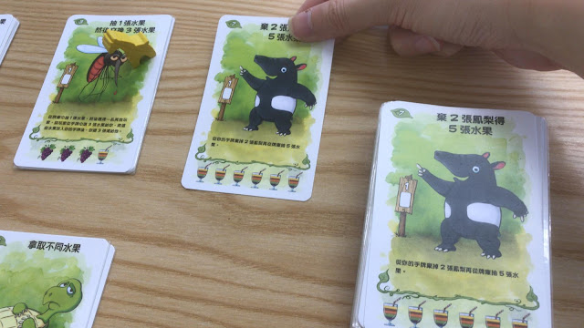 根據動物朋友卡下方的要求從手牌中交出指定的水果卡,