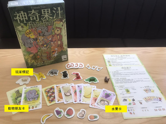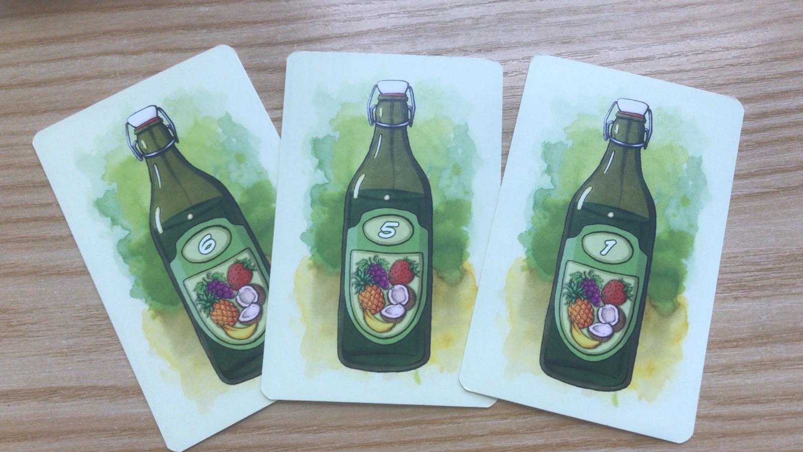 而且遊戲的結束方式是,一旦有玩家完成指定數量的果汁,並完成該輪後,最多果汁的玩家獲得2分,而其他玩家只要不是最少果汁的玩家都可獲得1分,而最少果汁的玩家就要繼續努力了…