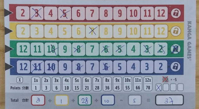 把對應的點數格子上打「X」。