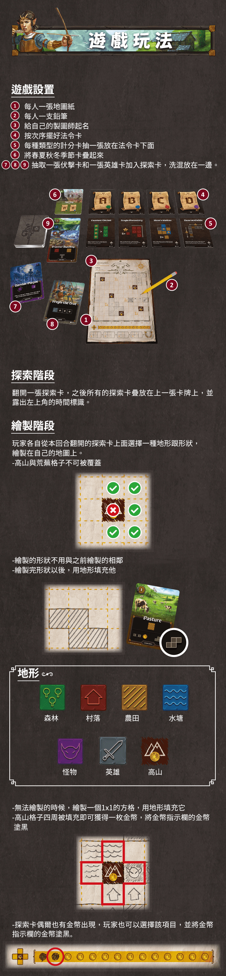 王國皇后下令開墾北方大陸,因此招集王國最好的製圖師。身為資深製圖師的你,即將踏上征途並繪製最完整的地圖!小心其他競爭的製圖師,因為他們也想得到皇后的的褒獎呢!
