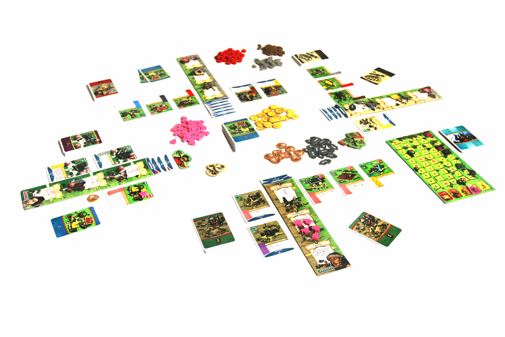 136個木製配件(包括32個食物、32個石頭、32個木頭、40個工人)