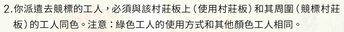 2. ⋯⋯⋯⋯注意:綠色工人的使用方式和其他顏色工人相同。