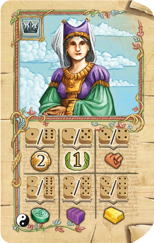 其角色功能僅在擲骰中發揮作用,包括:一輪開始時和拿取黒骰時的擲骰。
