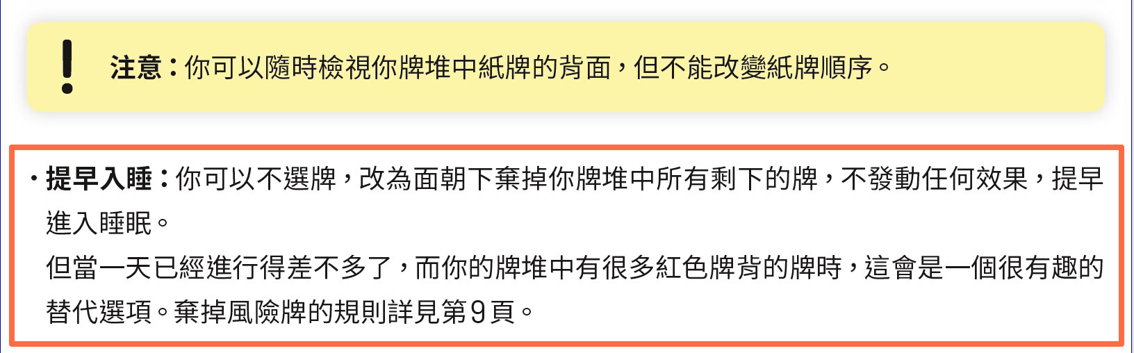勘誤公告 × 石器時代2.0 史前部落 說明書|P4左欄中段 ・提早入睡敘述修正如下: