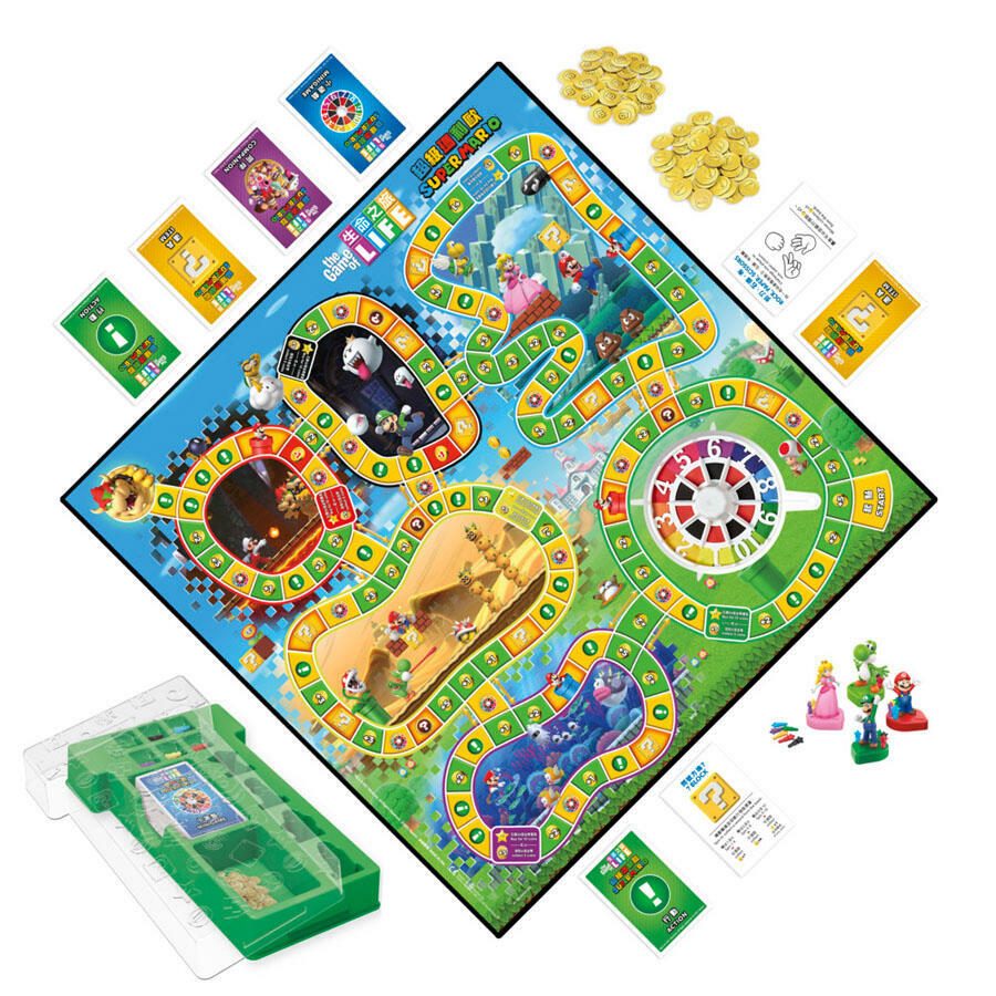 In The Game of Life: Super Mario Edition board game, players choose to play as Mario, Luigi, Peach, or Yoshi, journeying through the Mushroom Kingdom, and finally spinning to win in a battle against Bowser!
