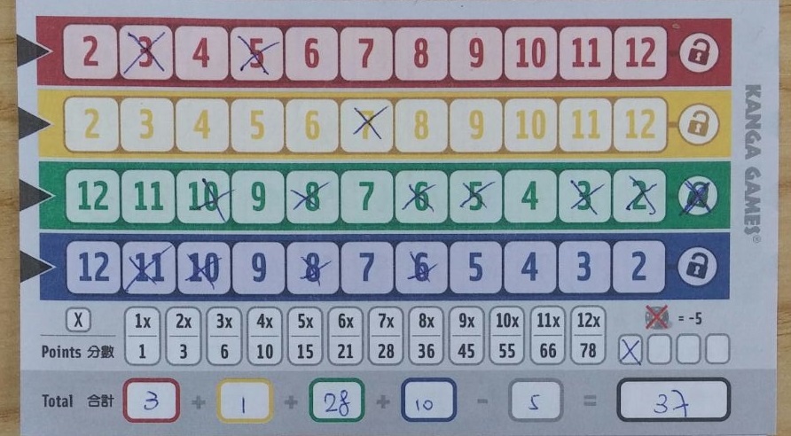 把對應的點數格子上打「X」。