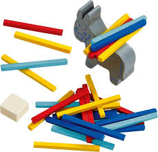 The object of Stapelei is to be the first to load all of the sticks onto the back of the mule without anything falling off.