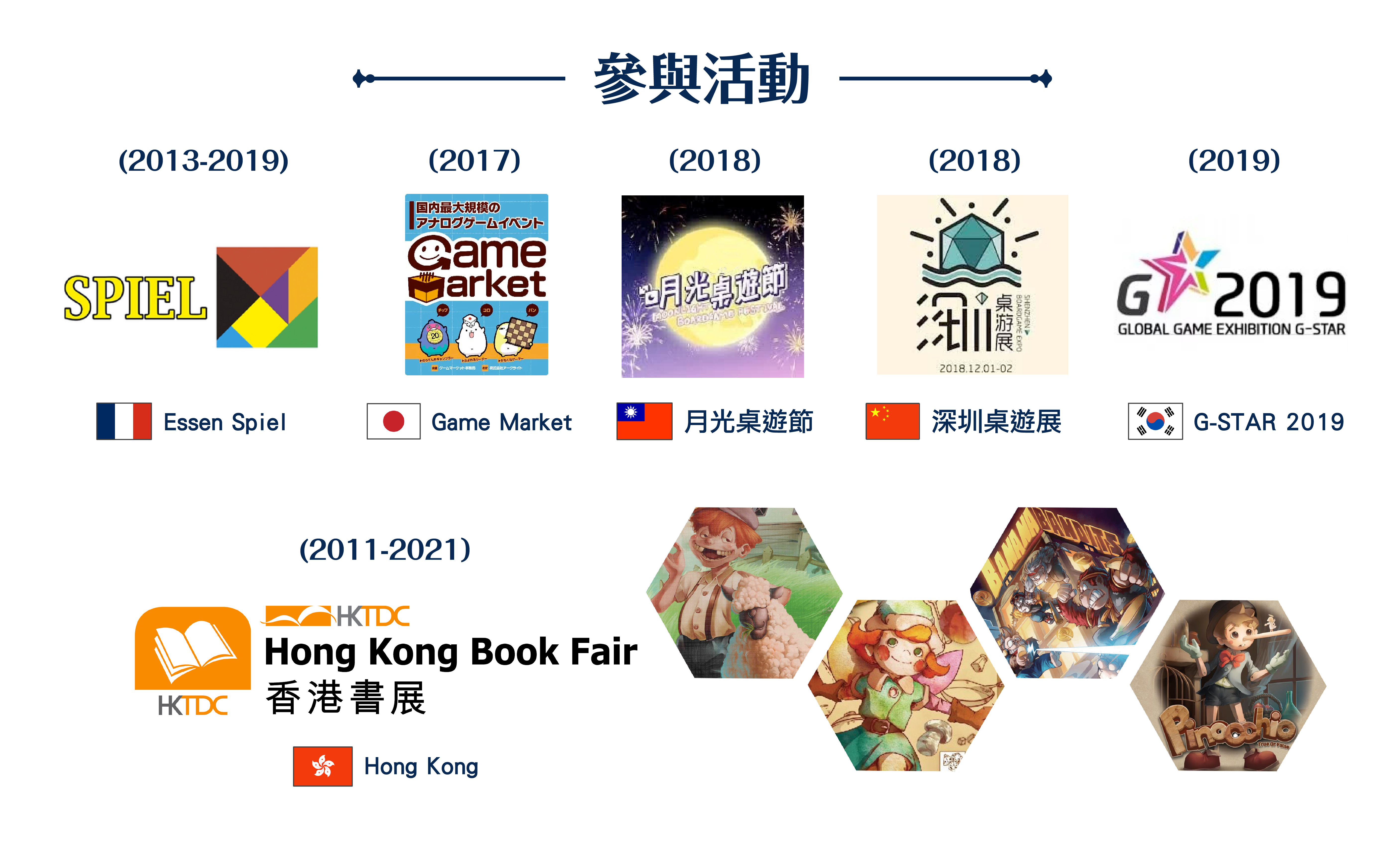 由2013年起,自家設計及出版的桌遊連續七年於德國埃森桌遊展(Essen Spiel)參展,向來自世界各地的桌遊公司及桌遊愛好者推廣香港設計的桌遊。