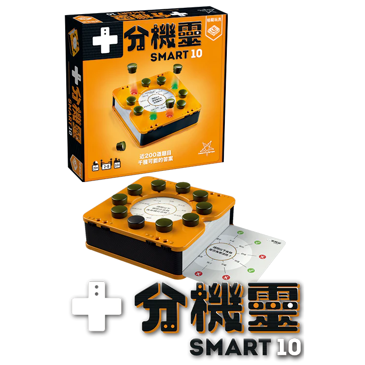 所有遊戲配件都收在出題器中,198道題目並包含提示和答案、分數記錄器與答案標記,還有可以供揮灑創意的空白題目牌,精巧的設計讓你與親朋好友隨時隨地都能開啟一場《十分機靈》腦力激盪!