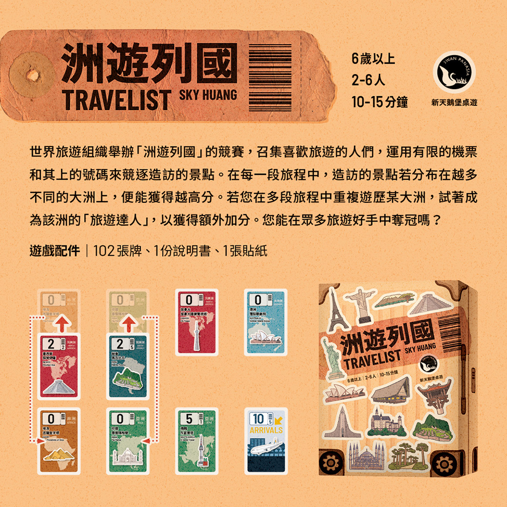 若您在多段旅程中重複遊歷某個大洲,試著成為該洲的「旅遊達人」,以獲得額外加分的機會。