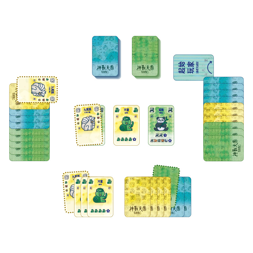 遊戲每一輪開始時會發給每位玩家10張隨機動物的手牌,然後翻開3張牌作為棄牌堆,剩餘的牌大致平分成2個牌庫,面朝下放在棄牌堆旁邊。