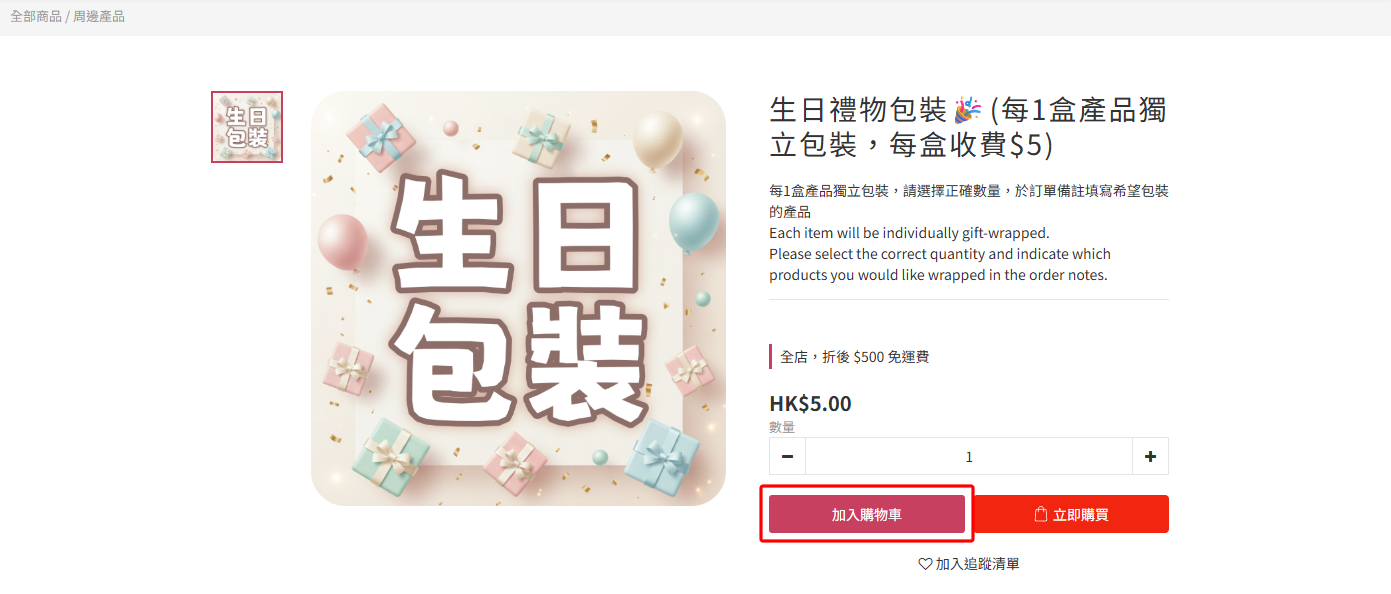 生日禮物包裝🎉(每1盒產品獨立包裝,每盒收費$5)