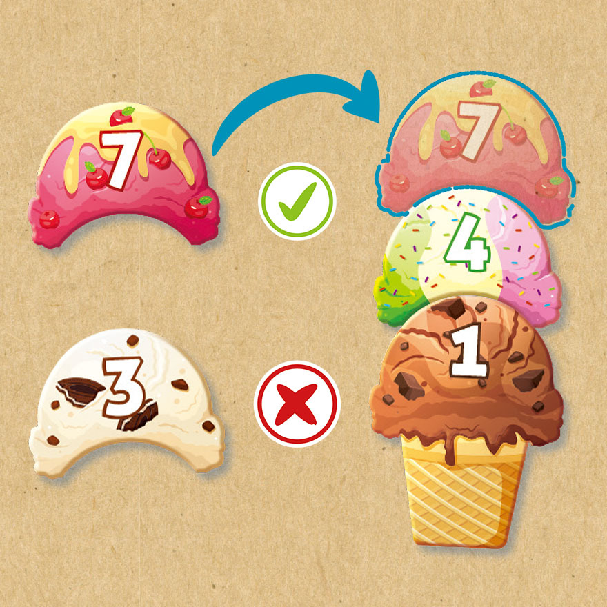 ■放上甜筒的冰淇淋數字要大於前一球,考驗眼力與勇氣。