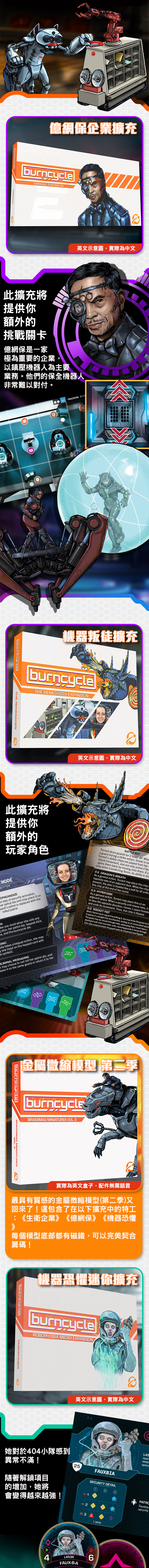 《超載循環》(Burncycle)是一款可以讓你在桌面上遊玩的遊戲,為合作通關類遊戲。可以同時讓1-4人一起遊玩,適合年齡為14歲以上。由備受好評《骸骨險境》相同出版社 Chip Theory Games 操刀的新桌遊,在遊戲性上絕對不容你操心。