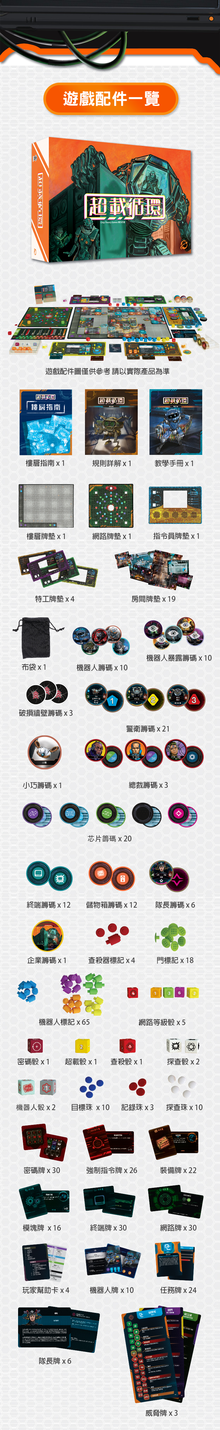 超載循環是一個能夠讓機器人短暫擺脫控制的程式。在每一輪中,你可以透過這個程式進行行動,但是每回合結束時這個程式都會有一部分芯片「失靈」,這也導致了未來能夠進行的行動變少。所以,你們必須要不斷更換芯片!讓超載循環可以一直跑下去。