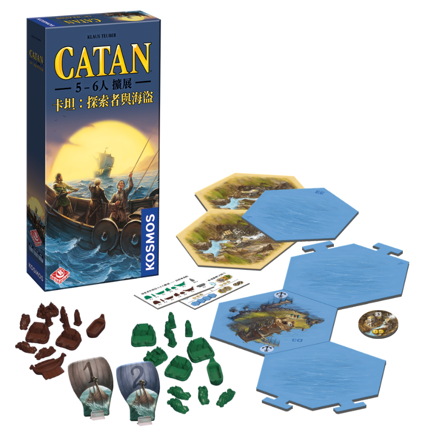 這是卡坦:探索者與海盜的5-6人擴展,是為了讓玩家可以5至6人同玩