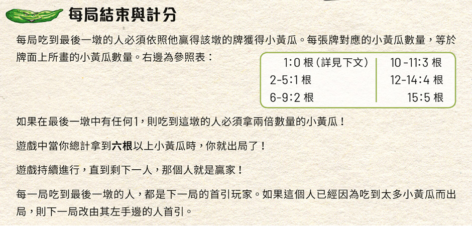 「遊戲中當你總計拿到六根以上小黃瓜時,你就出局了!」