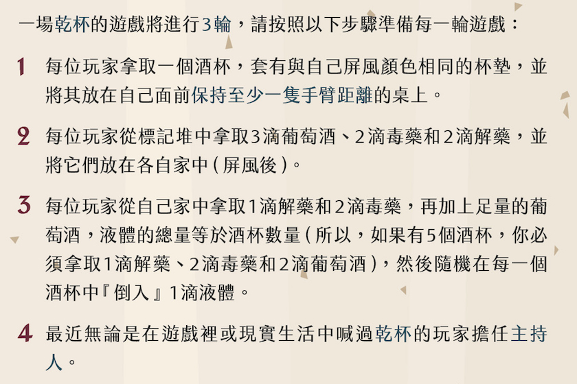 因為有一名玩家正在計劃毒殺你!?你必須隨時準備好乾杯!