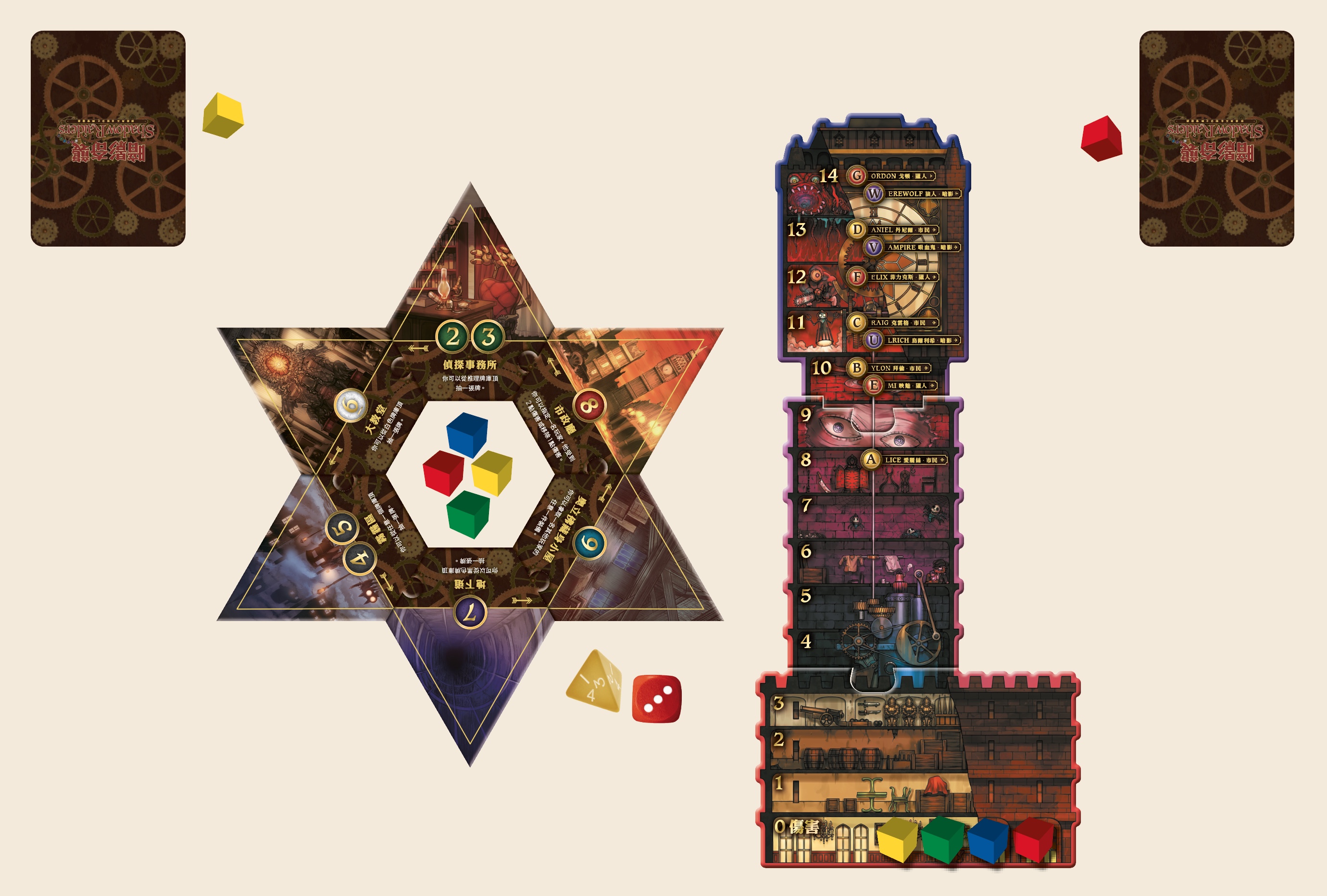 遊戲開始時,沒有人知道你的真實身分,使用特殊能力以及紙牌效果在地區間移動,盡速找到與你相同陣營的伙伴,打倒對手,共享勝利!