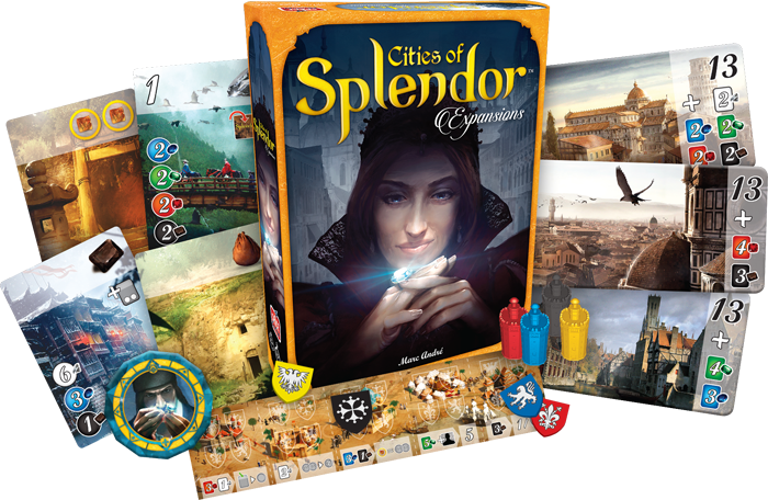 經典的璀璨寶石擴充登場!在城市擴充中,工匠們將璀璨寶石打造成了一件件華麗的首飾,讓來自東方的光輝,閃耀與這個世界之中。充滿挑戰的四個擴充:繁華之城、貿易之路、東方之門、榮譽之戰。四個擴充規則必須單獨使用,並與主遊戲搭配遊玩。