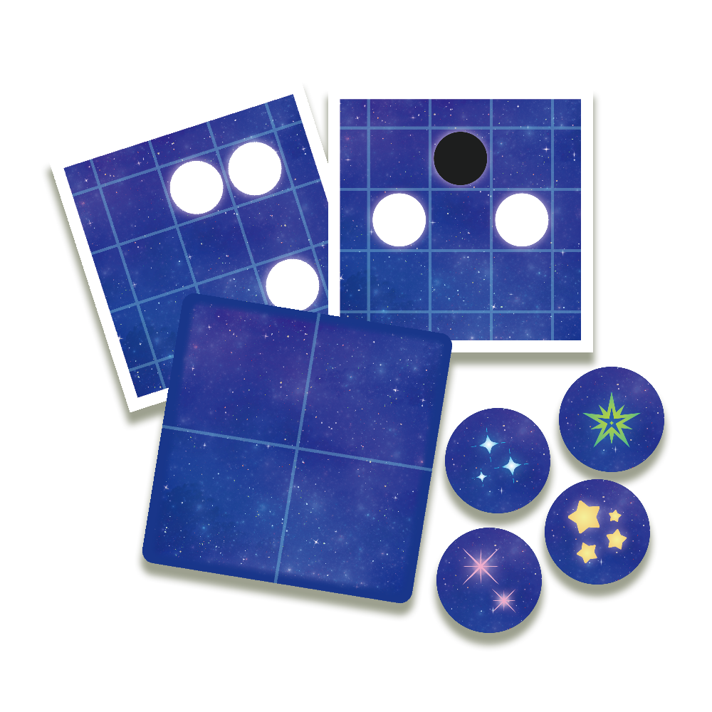 玩家須巧妙佈局,預測星辰流動,在閃爍的星光中率先連成四顆星星,贏得勝利。