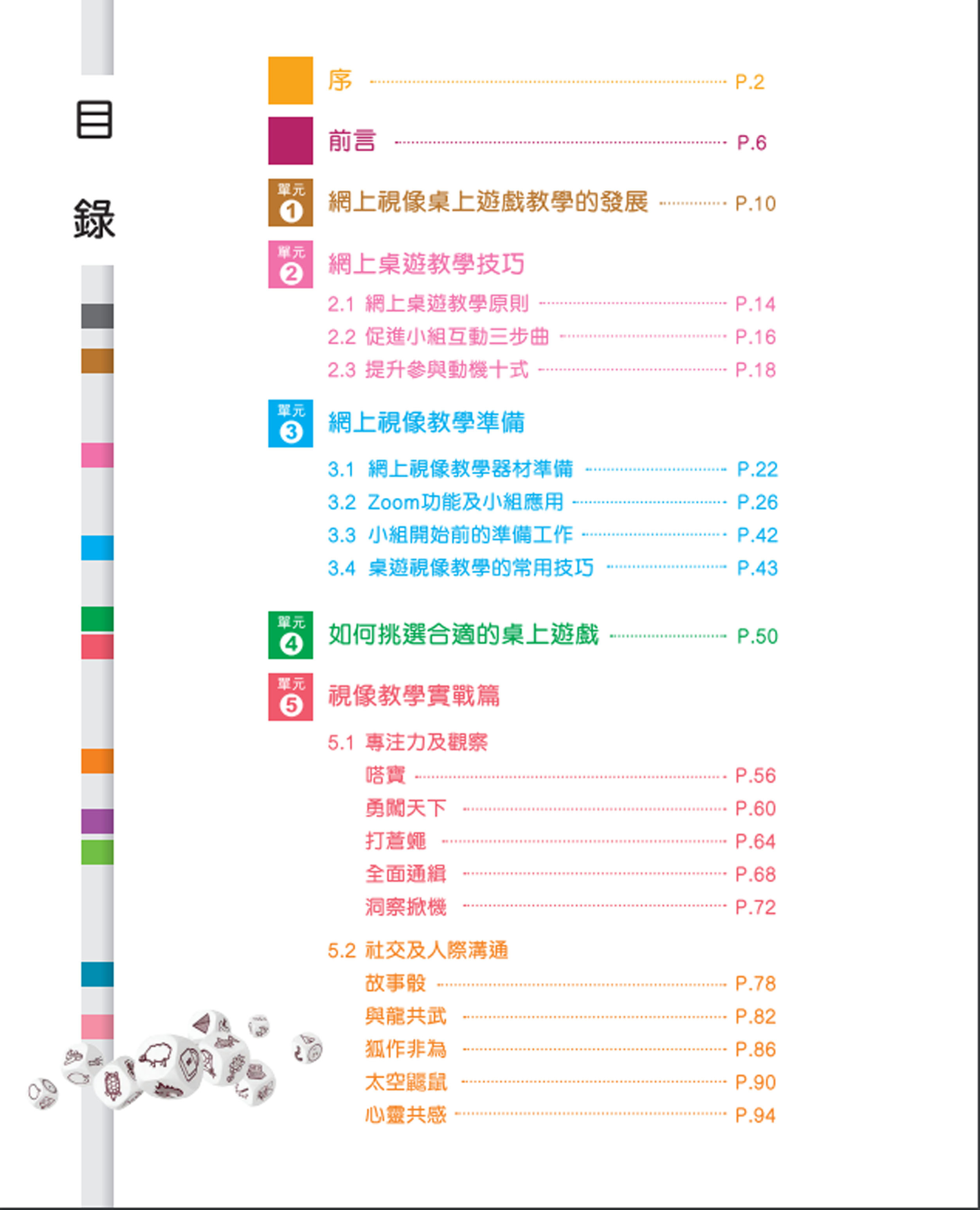 隨著網上教學普及化,究竟如何讓桌遊教育同樣可以「停課不停學」呢?要在安全的環境下,保持趣味學習之餘,亦能達至學習目標,於是香港桌上遊戲教育學苑發展了一套網上視像桌遊學習模式,更希望藉此書向大家分享團隊過去累積網上桌遊課程的經驗,一起探討網上視像桌遊學習模式的應用技巧,並且享受桌遊教育所帶來的好處。
