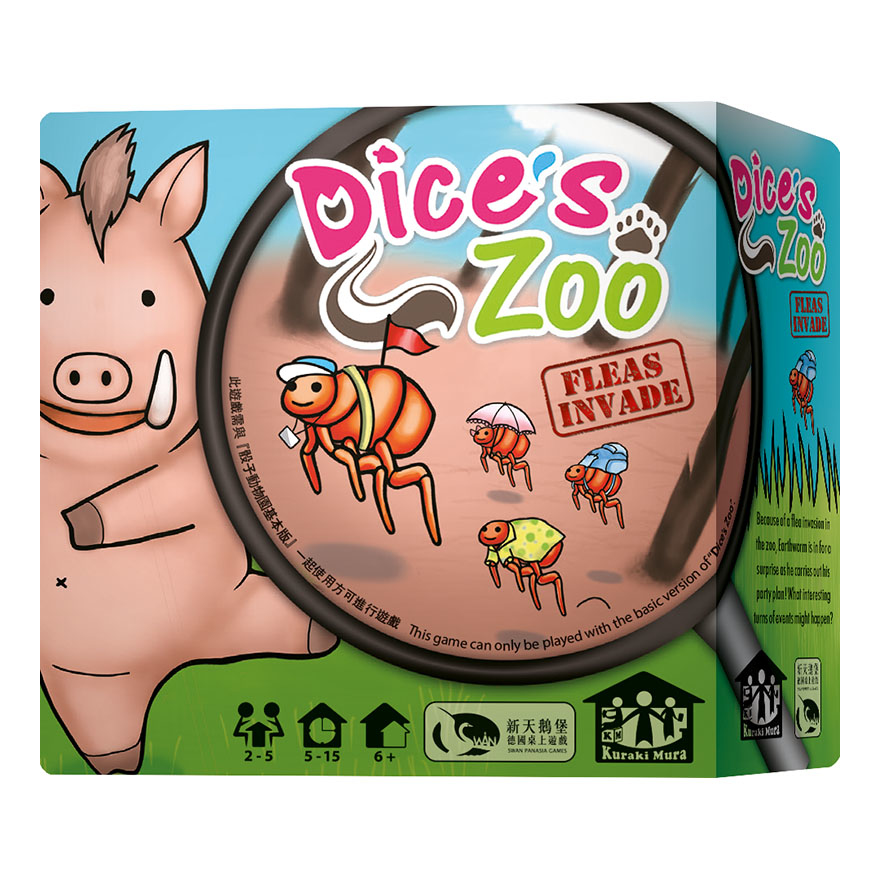 此為「動物骰」遊戲的擴充,新增12顆包含跳蚤與管理員效能之紅骰,